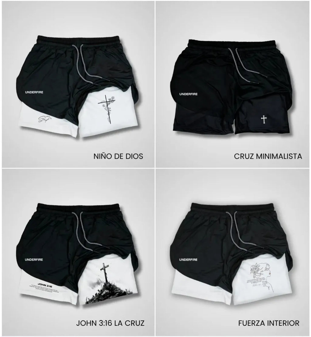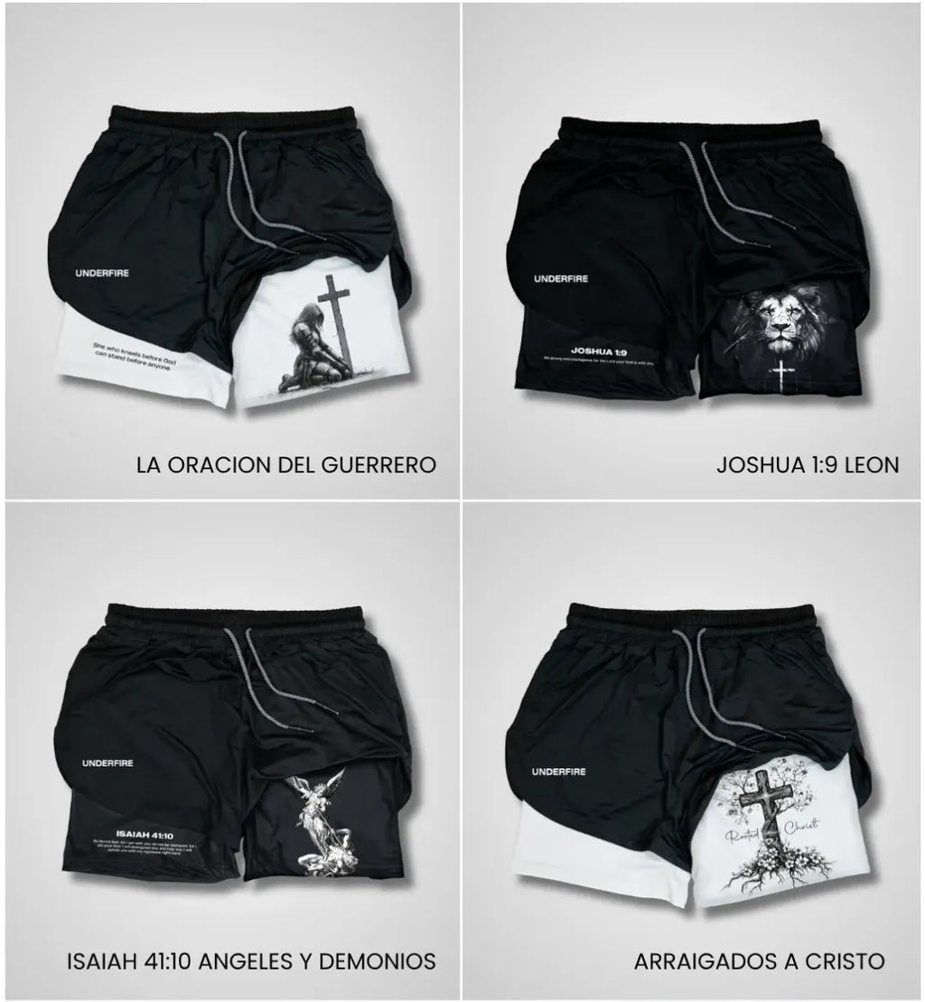 Mantente activa y firme en tu fe con estos shorts 2 en 1 con licra interna de compresión, tela ligera y secado rápido con diseños cristianos de edición limitada, creados para acompañarte en cada desafío con comodidad, confianza y valentía.